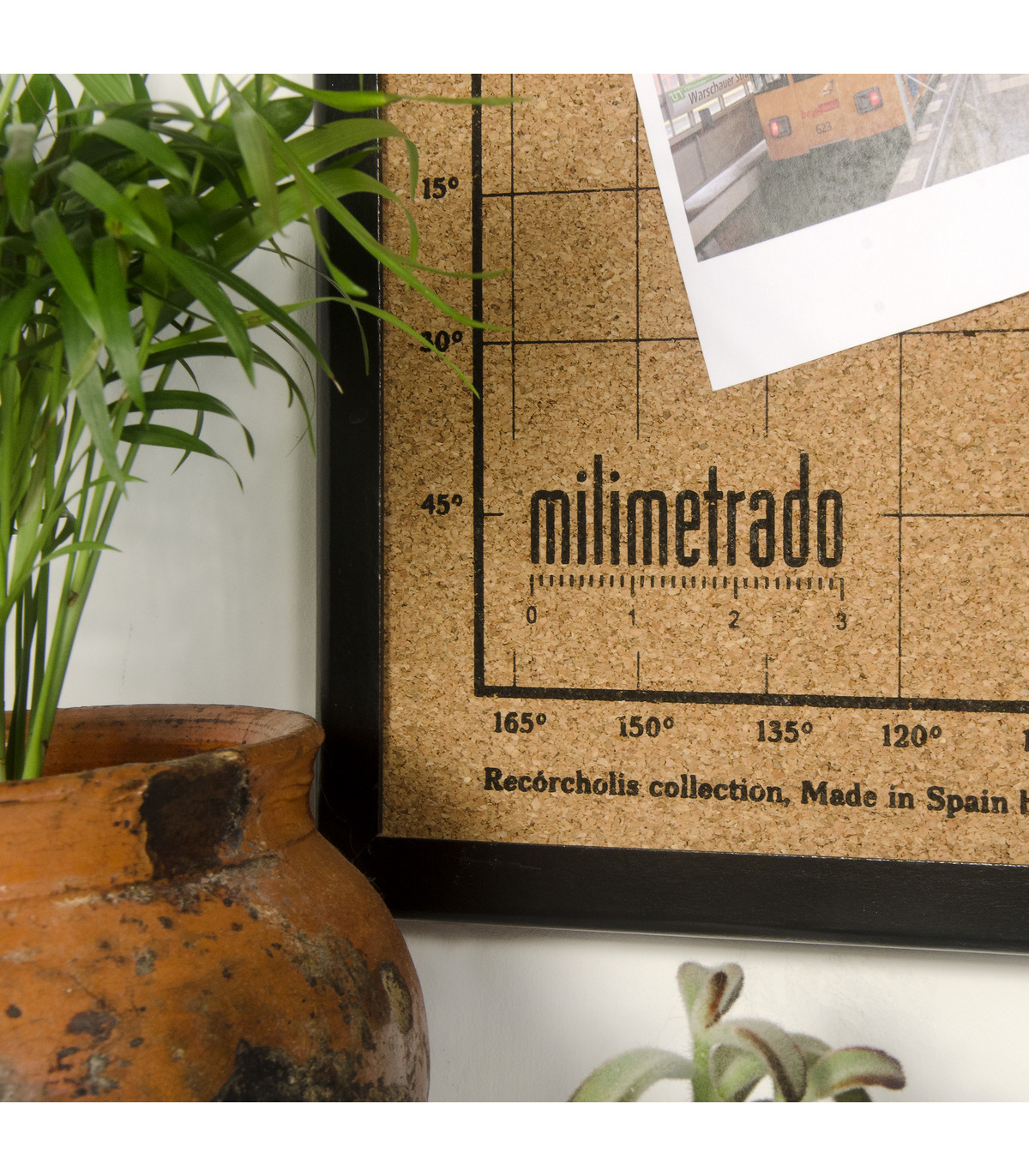 La colección de tableros Recórcholis, enmarcados en madera natural o lacada en negro y serigrafiados con ilustraciones evocadoras han sido diseñados y fabricados 100% en la península ibérica por Milimetrado. En la península ibérica se produce el 77% de todo el corcho mundial.