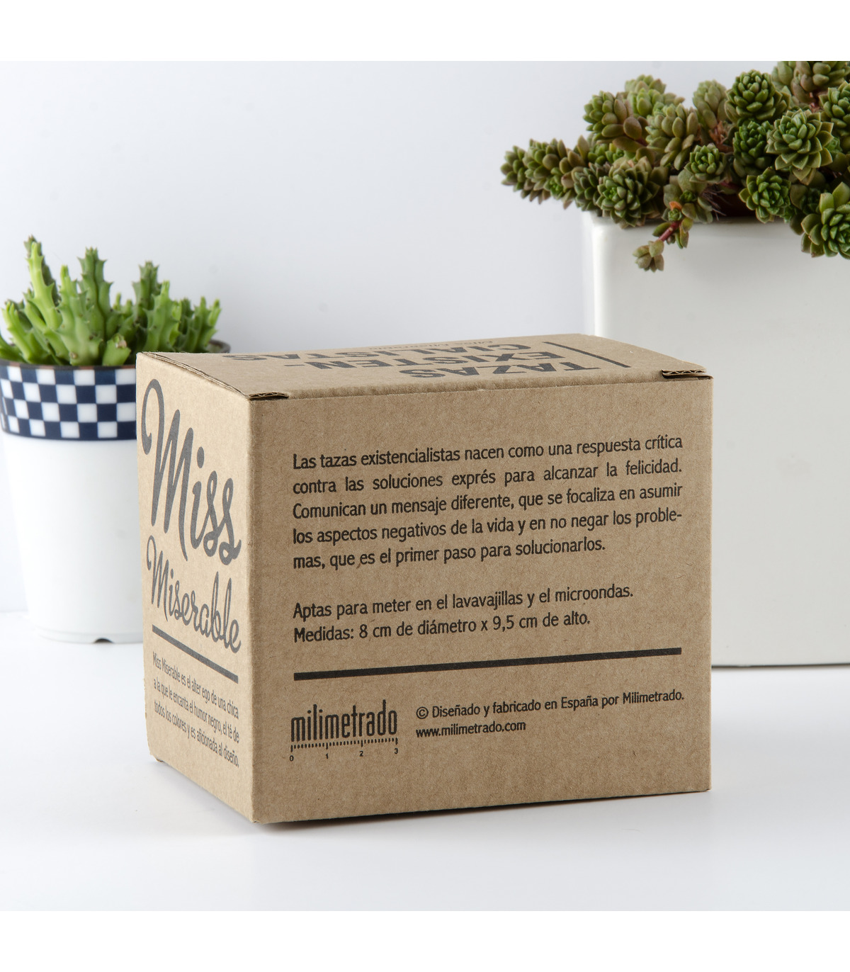 Original y con un mensaje claro y conciso, esta taza es una creación de Miss Miserable, el alter ego de una chica a la que le encanta el humor negro, los gatos y es aficionada al diseño.