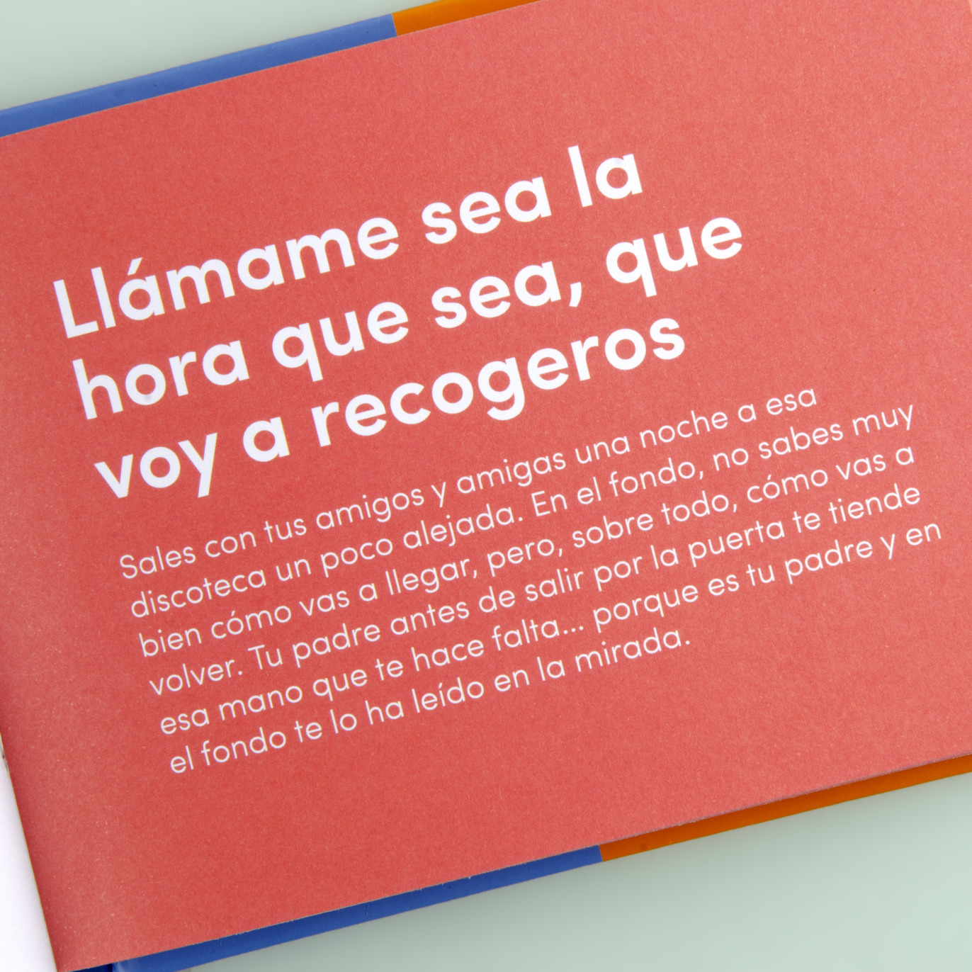 - Libro ilustrado con frases de padre acompañadas de textos que las analizan.