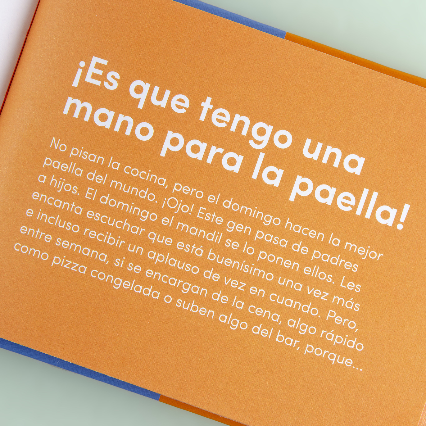 El diseño de este libro, que se ha escrito e ilustrado con toneladas de buen rollo como un homenaje a todos los padres del mundo, es de Muak Studio y se ha impreso en una imprenta de Madrid con más de 50 años de experiencia.