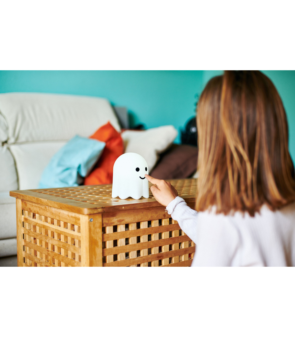 La lámpara fantasmita Bú es una preciosa luz de noche con forma de fantasma. Con un diseño adorable y minimalista quedará perfecta en la habitación de los niños o en cualquier lugar de la casa donde la pongas.