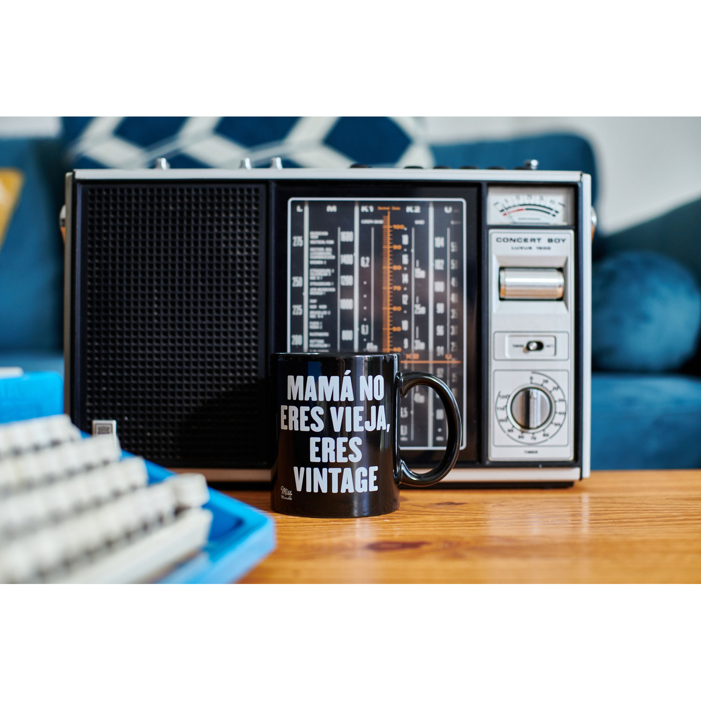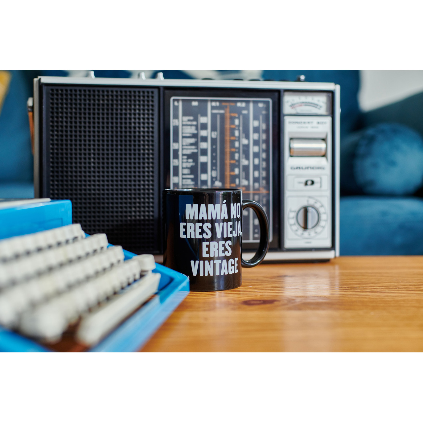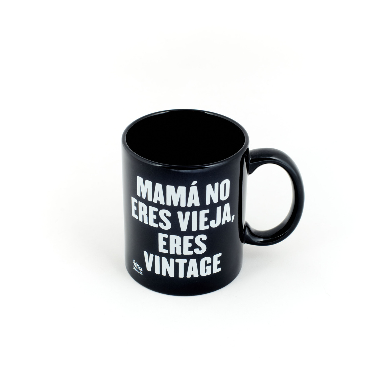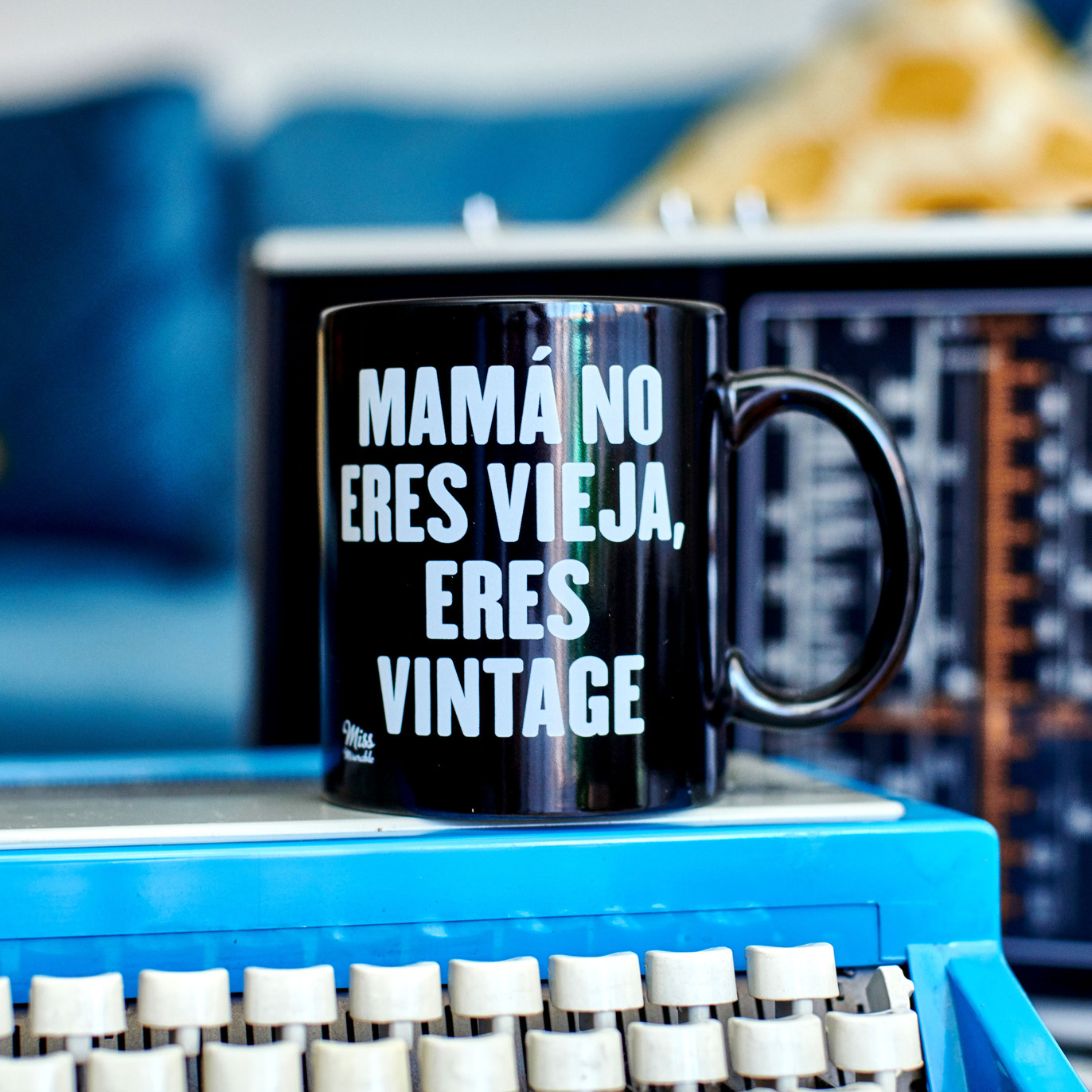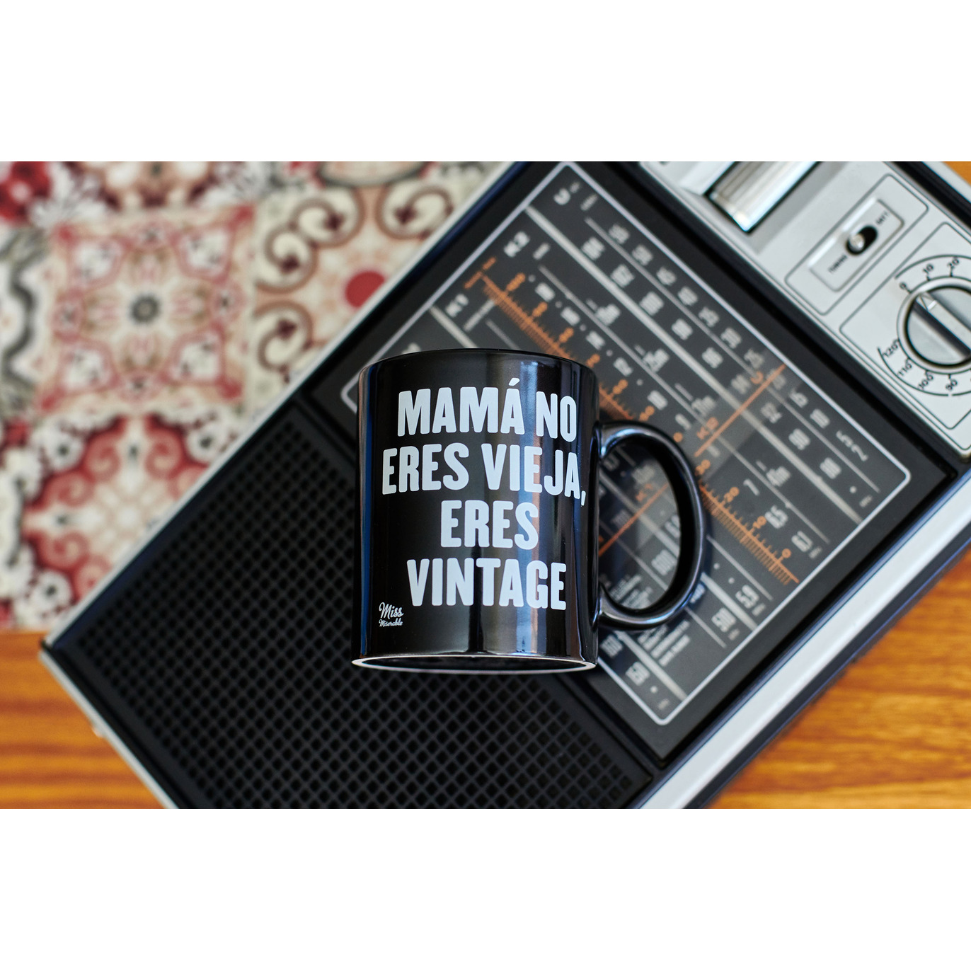 - Taza con el mensaje "Mamá no eres vieja, eres vintage".