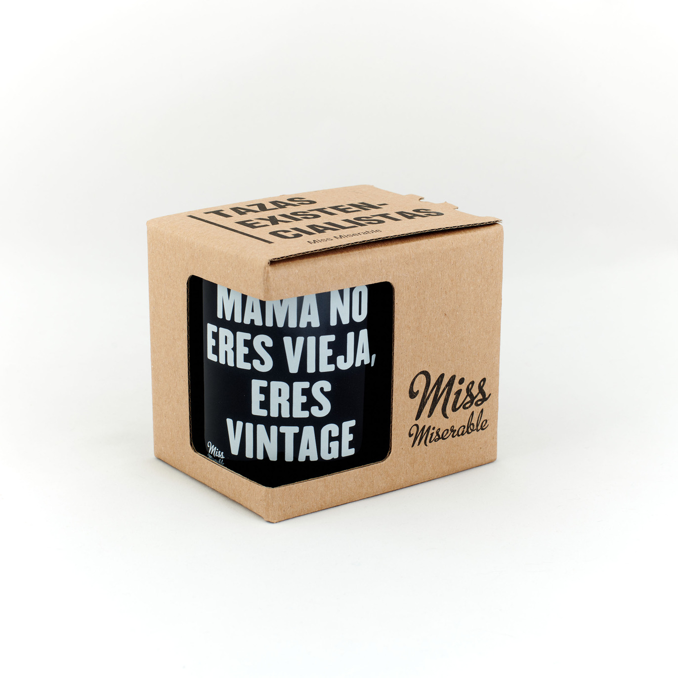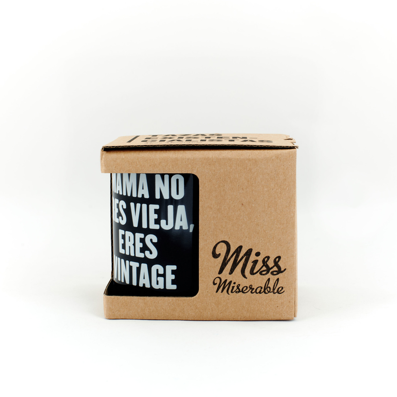 Tu madre no es vieja, es vintage, tan vintage como unos vaqueros Levi’s 501 o un casete de Madonna; que ya tienen sus años, pero siguen molando tanto o más que antes. Con esta taza diseñada por Miss Miserable podrás decirle a tu madre de una forma cariñosa que envejecer no está tan mal como parece.