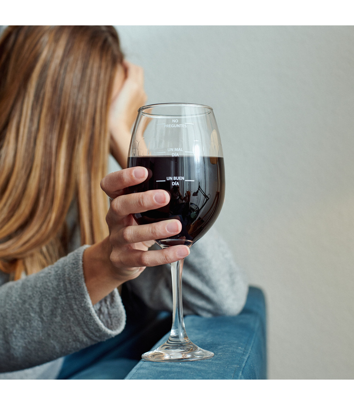 - Copa de vino con marcas para llenarla dependiendo de tu estado de ánimo.