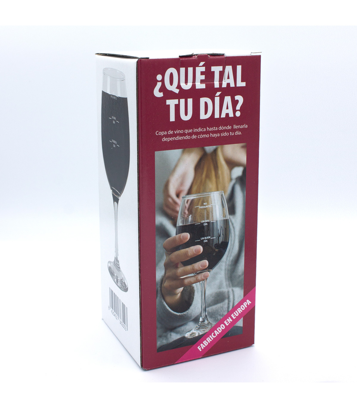 Hay días buenos, días malos y días que mejor no preguntar... señala cómo ha ido tu día llenando esta divertida copa de vino.