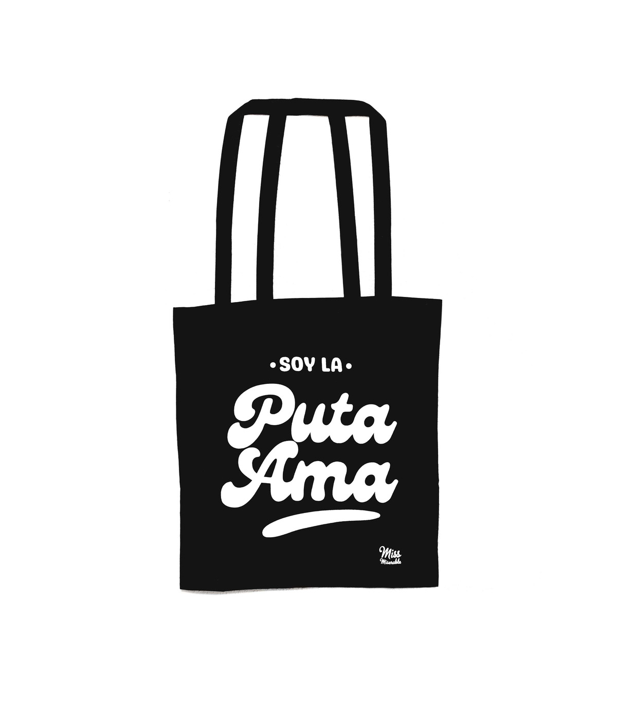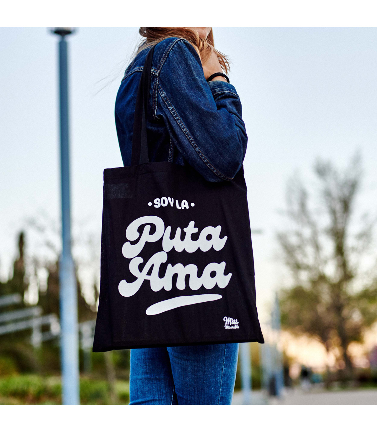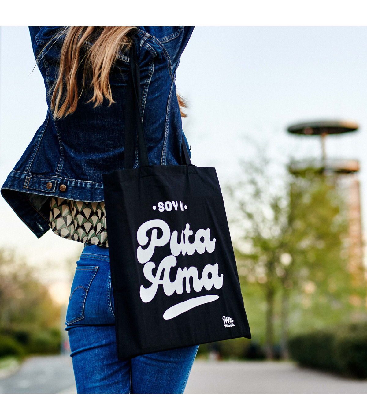 - Bolsa tipo tote bag con mensaje "Soy la Puta Ama".