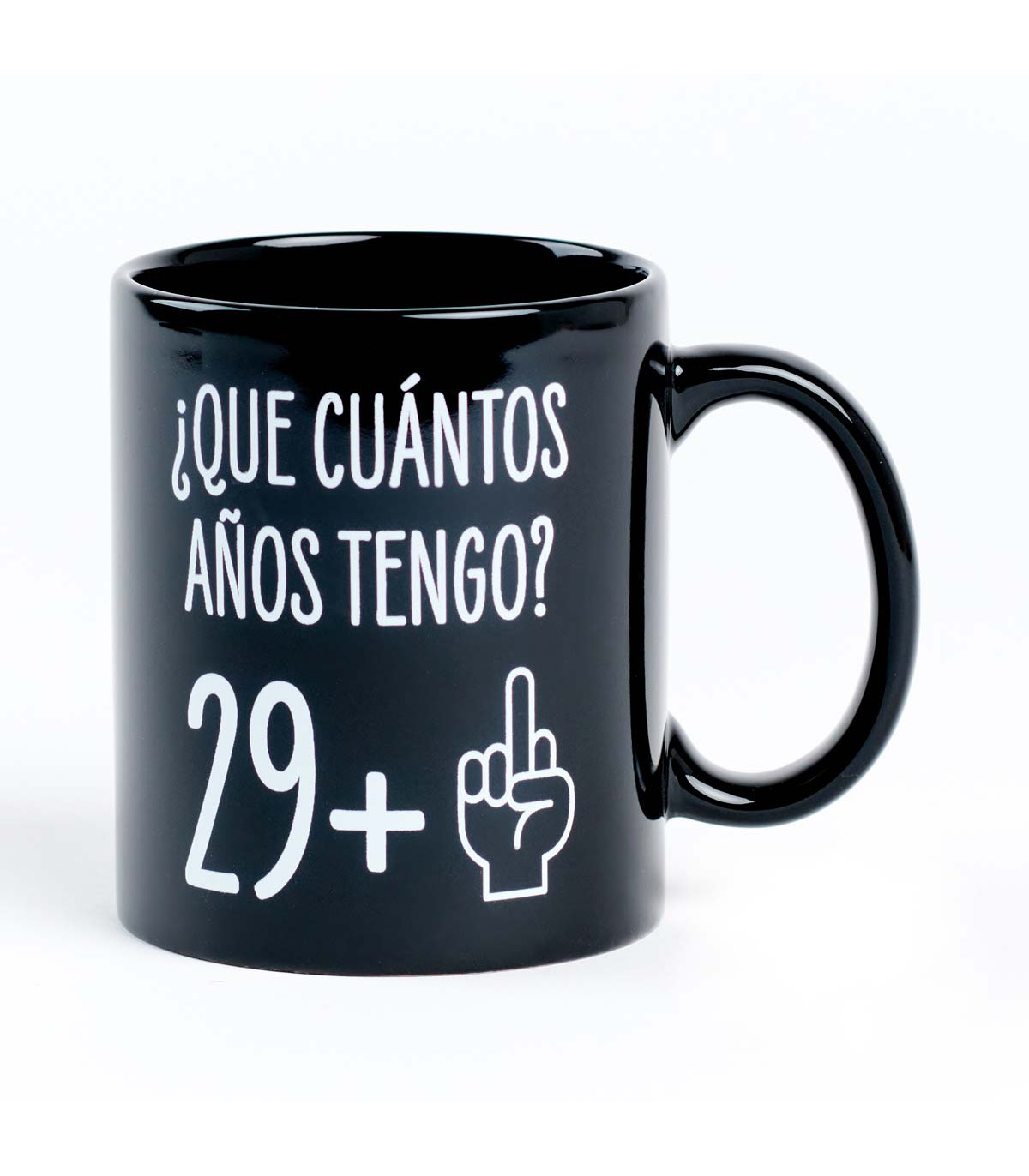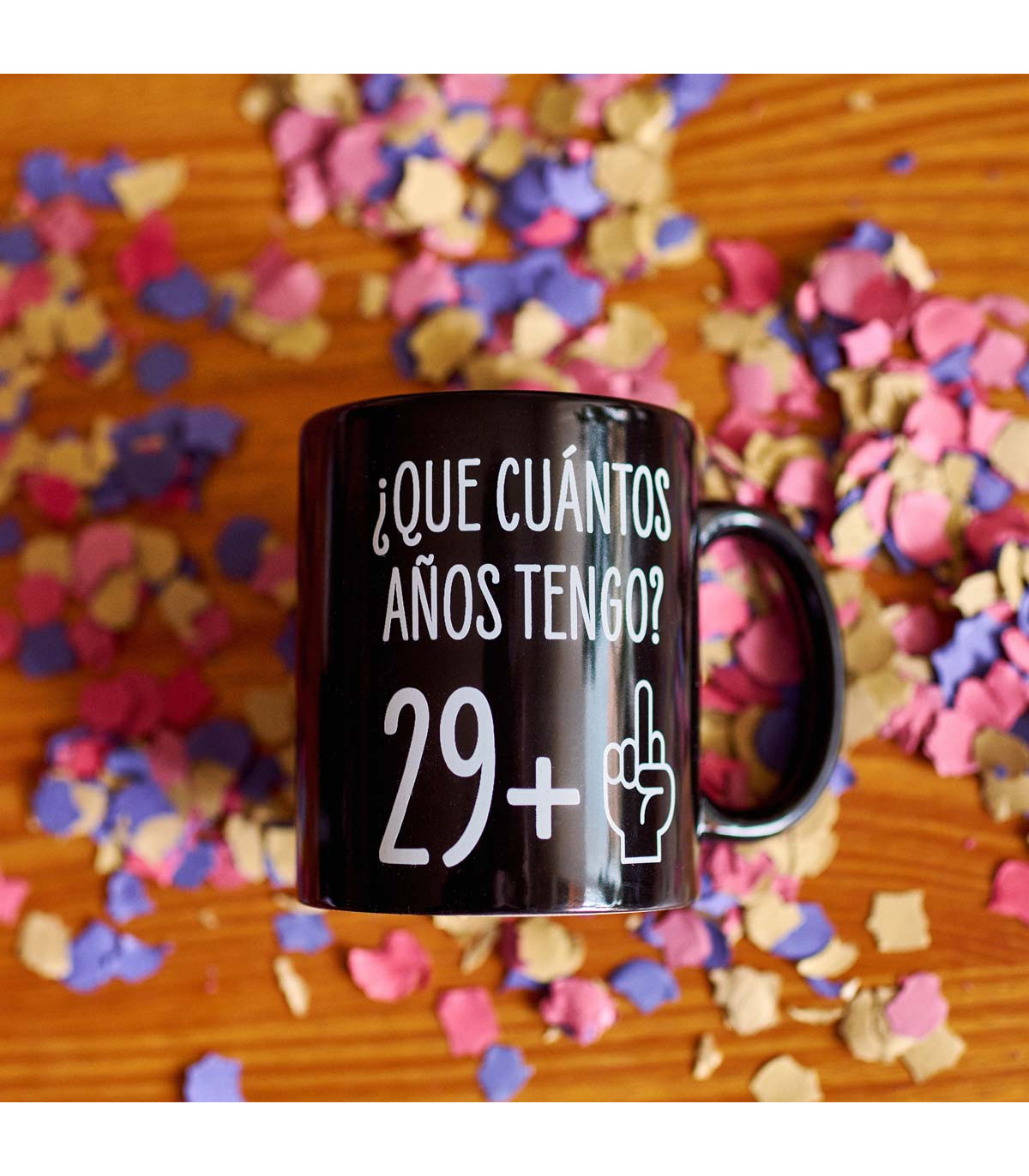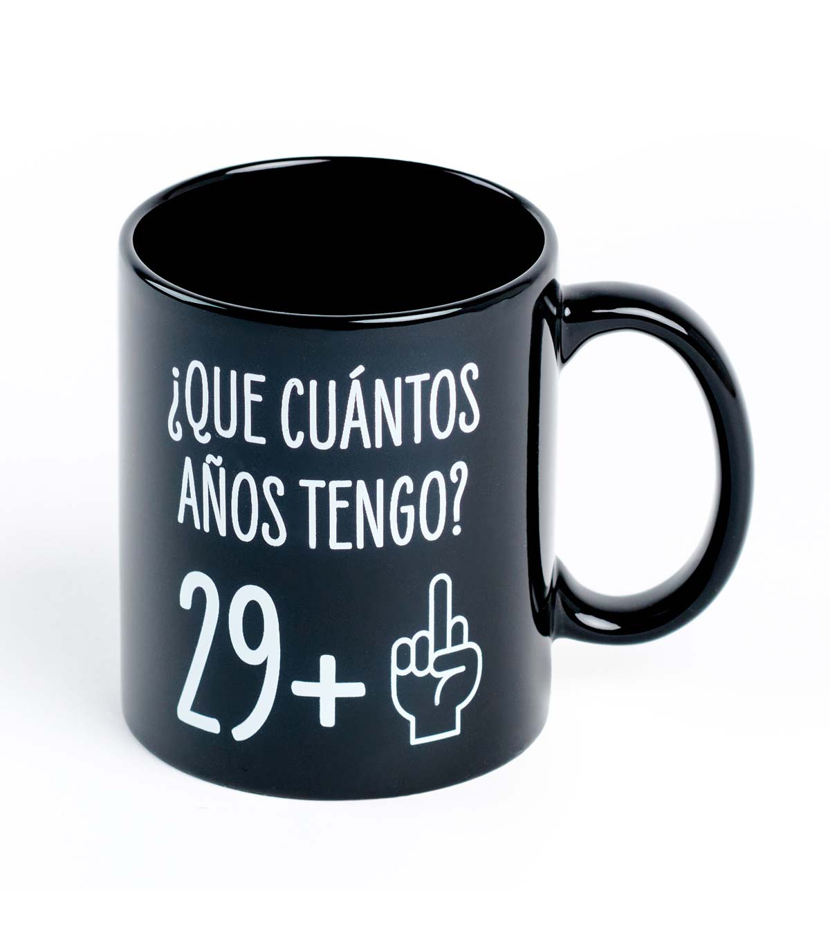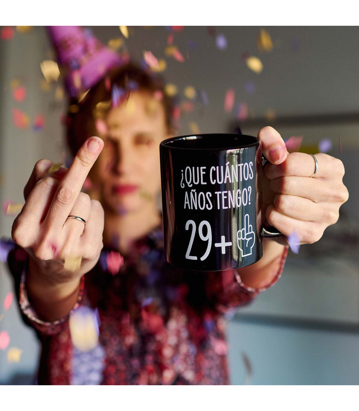- Taza para 30 cumpleaños con el mensaje "¿Que cuántos años tengo? 29+1".