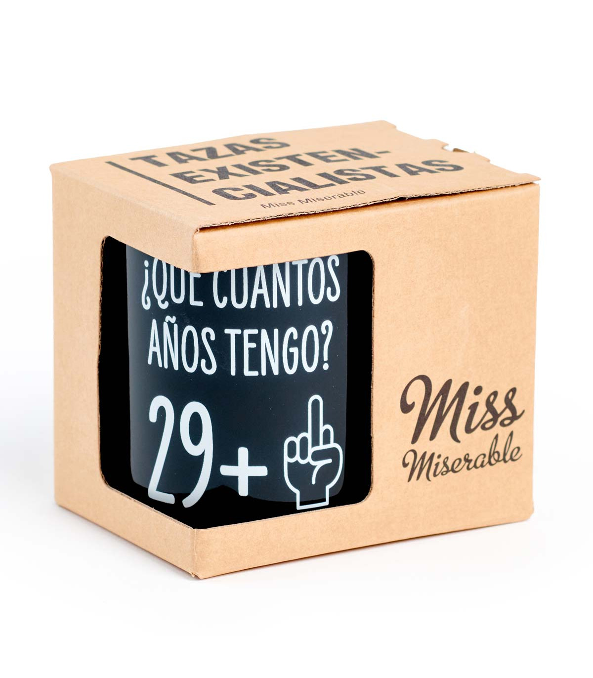 Si te cuesta asumir que has dejado la veintena atrás, lanza una indirecta a todo aquel que te pregunte por tu edad con esta taza diseñada por Miss Miserable.