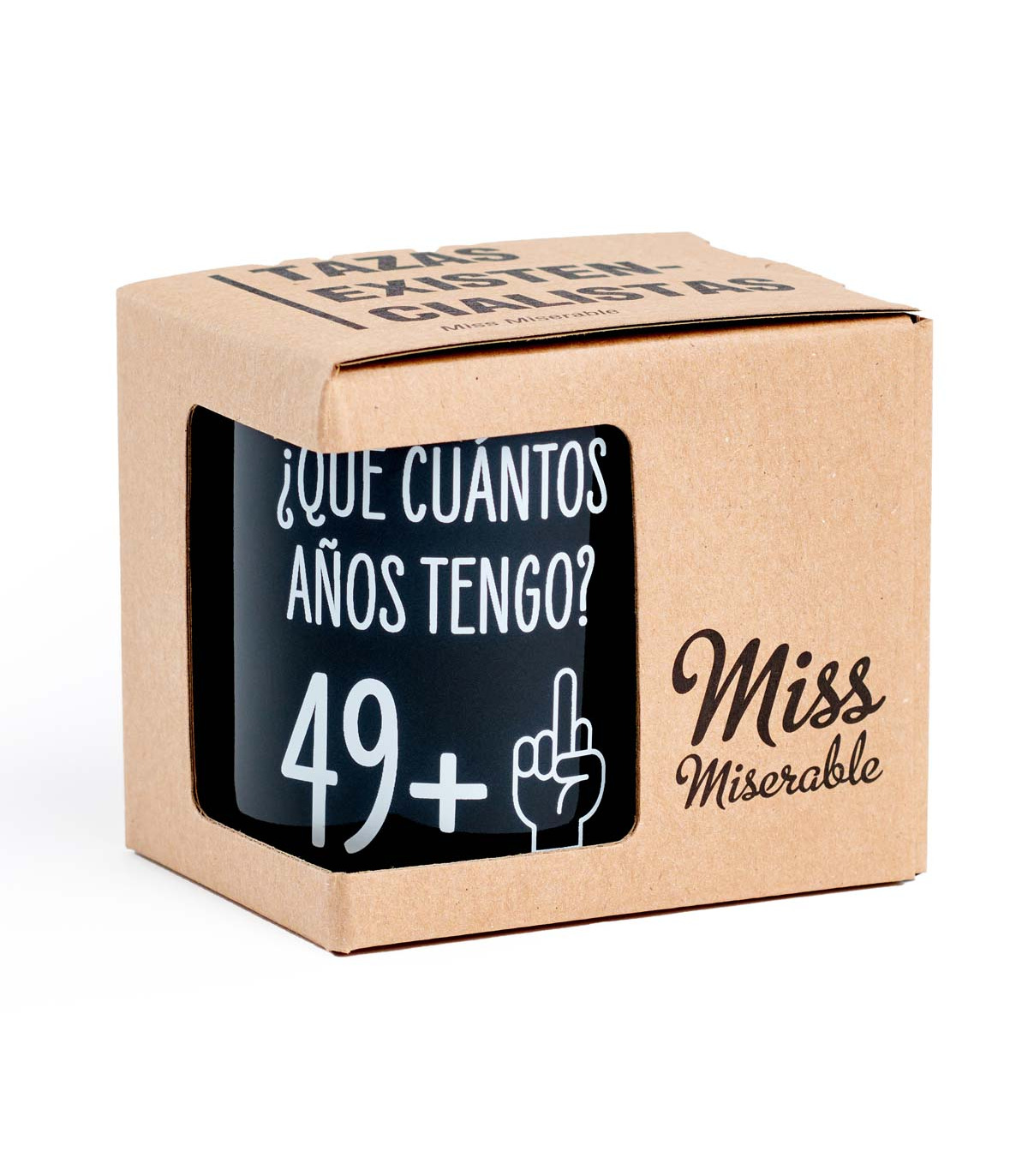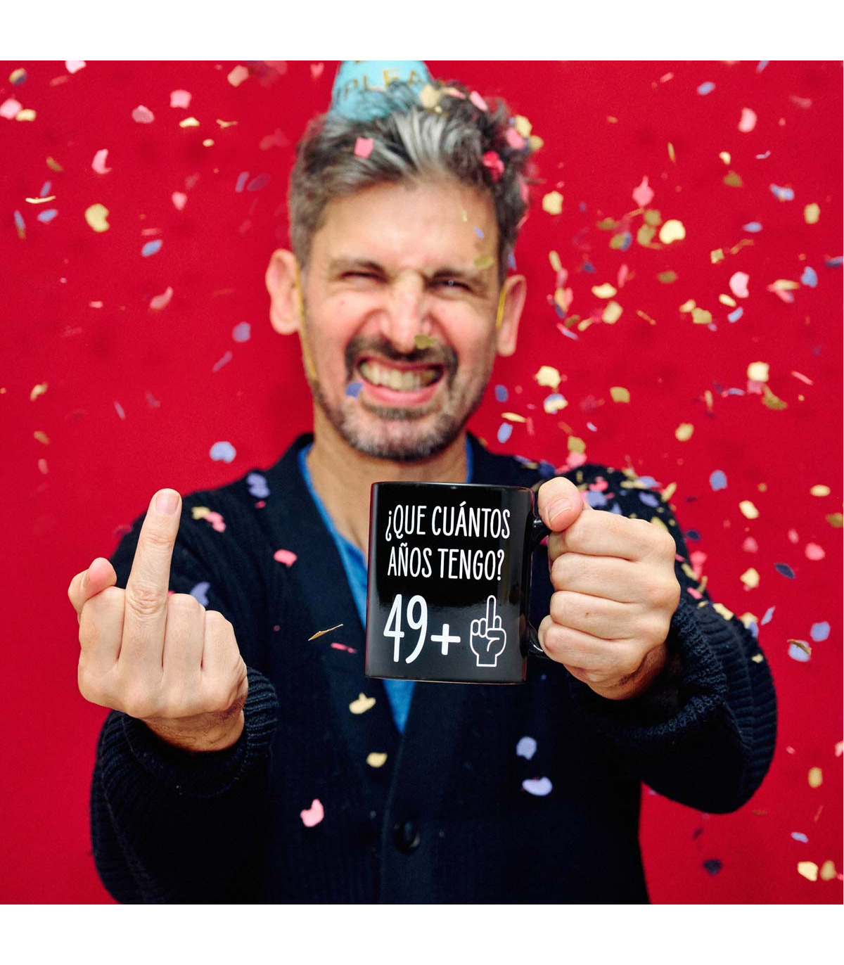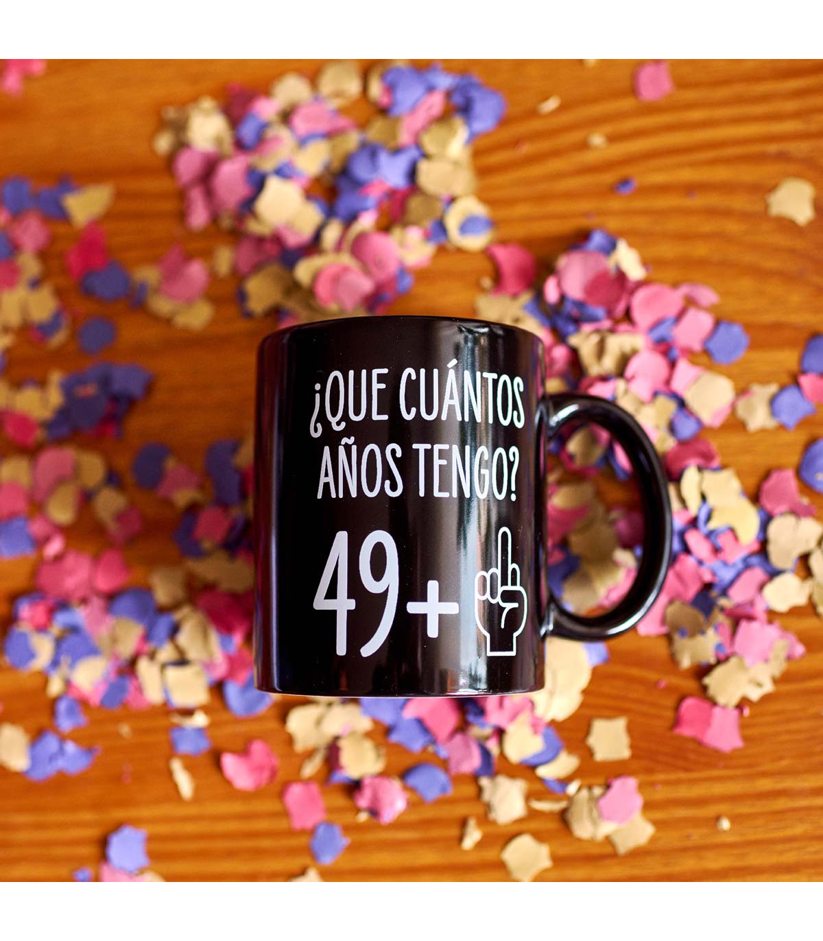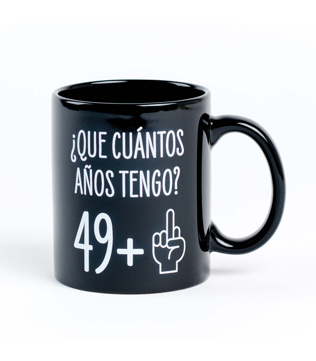 - Taza para 50 cumpleaños con el mensaje "¿Que cuántos años tengo? 49+1".