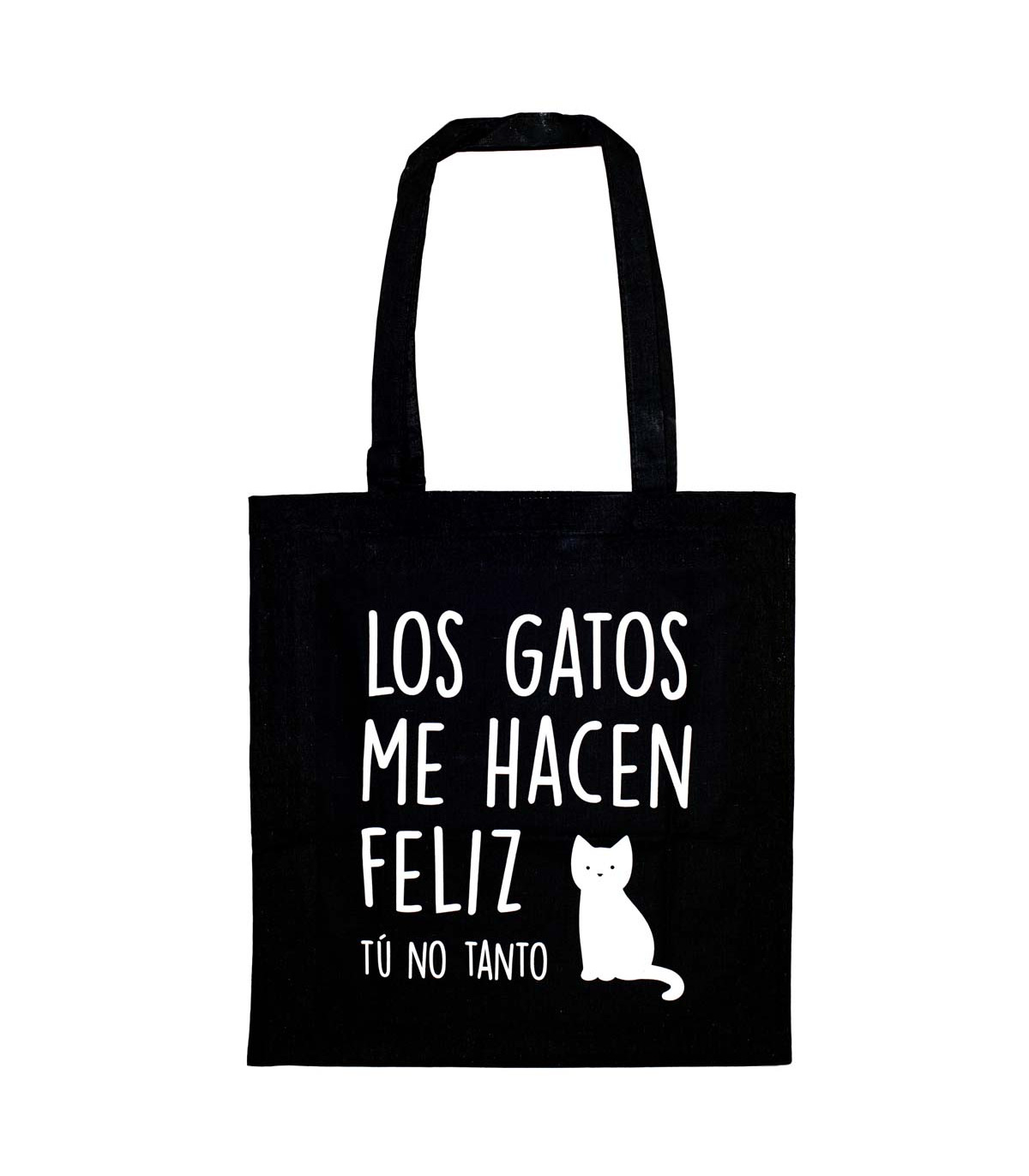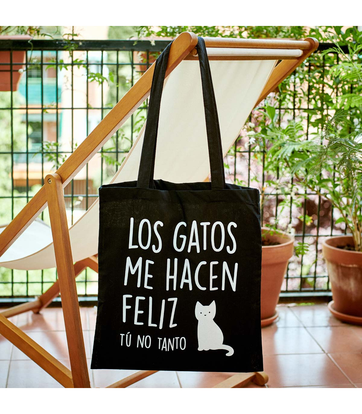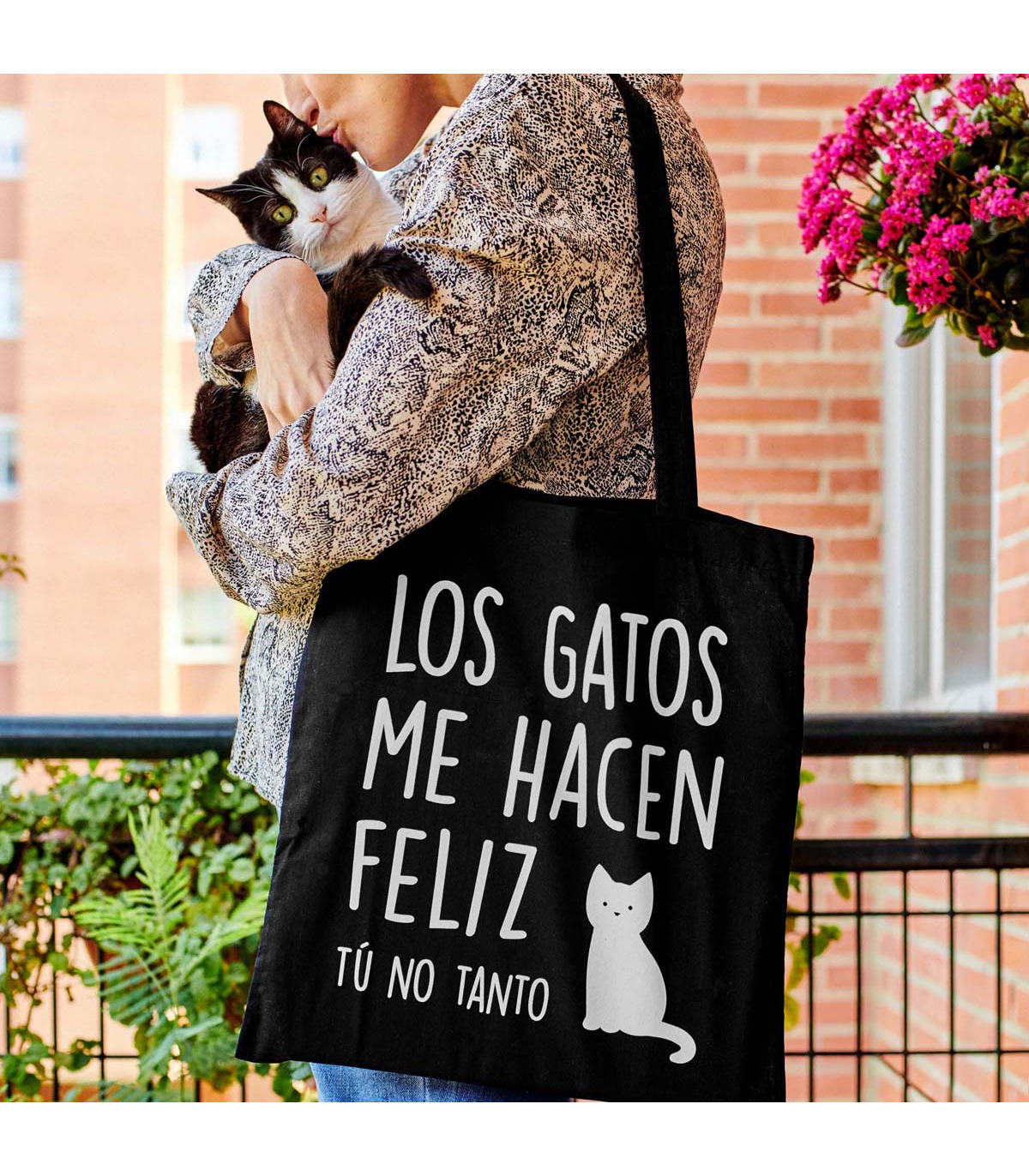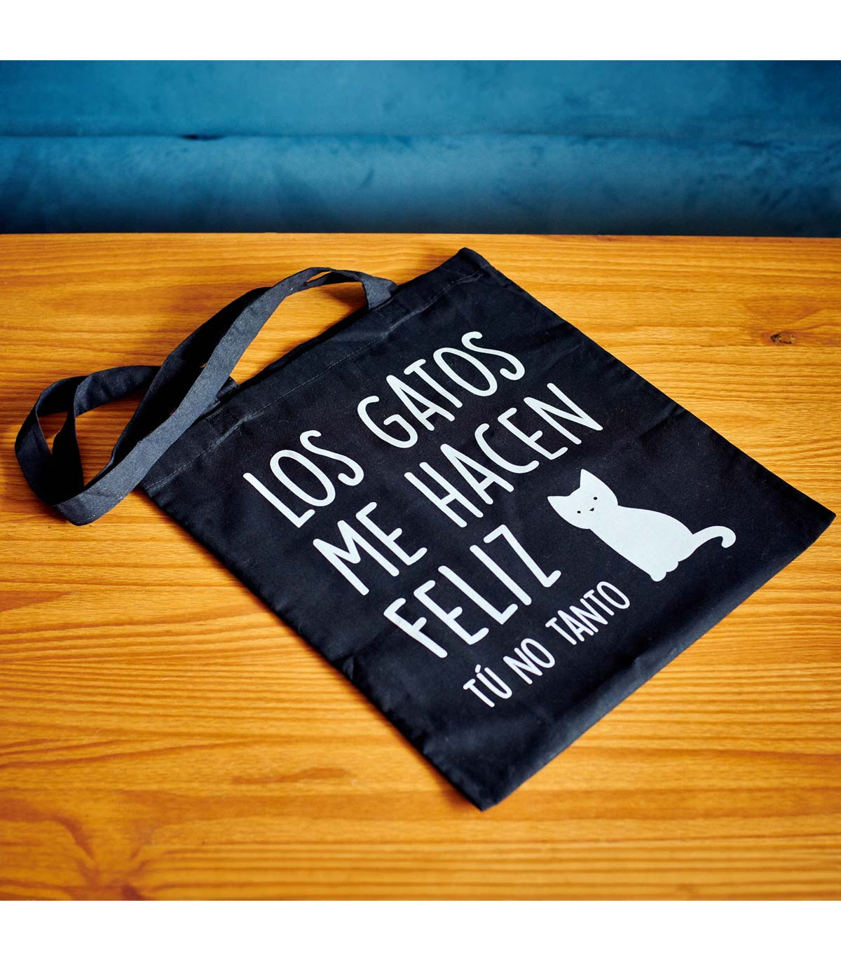 - Bolsa tipo tote bag con mensaje "Los gatos me hacen feliz tú no tanto".
