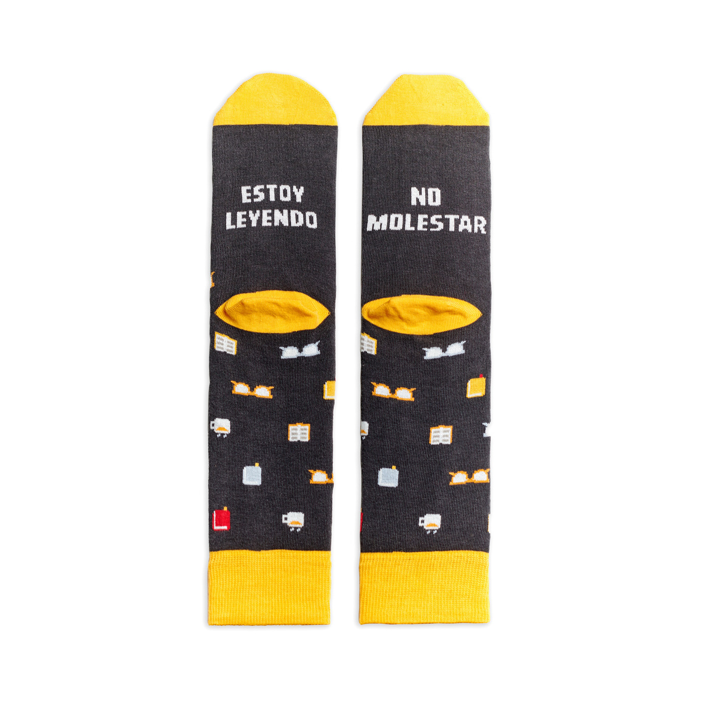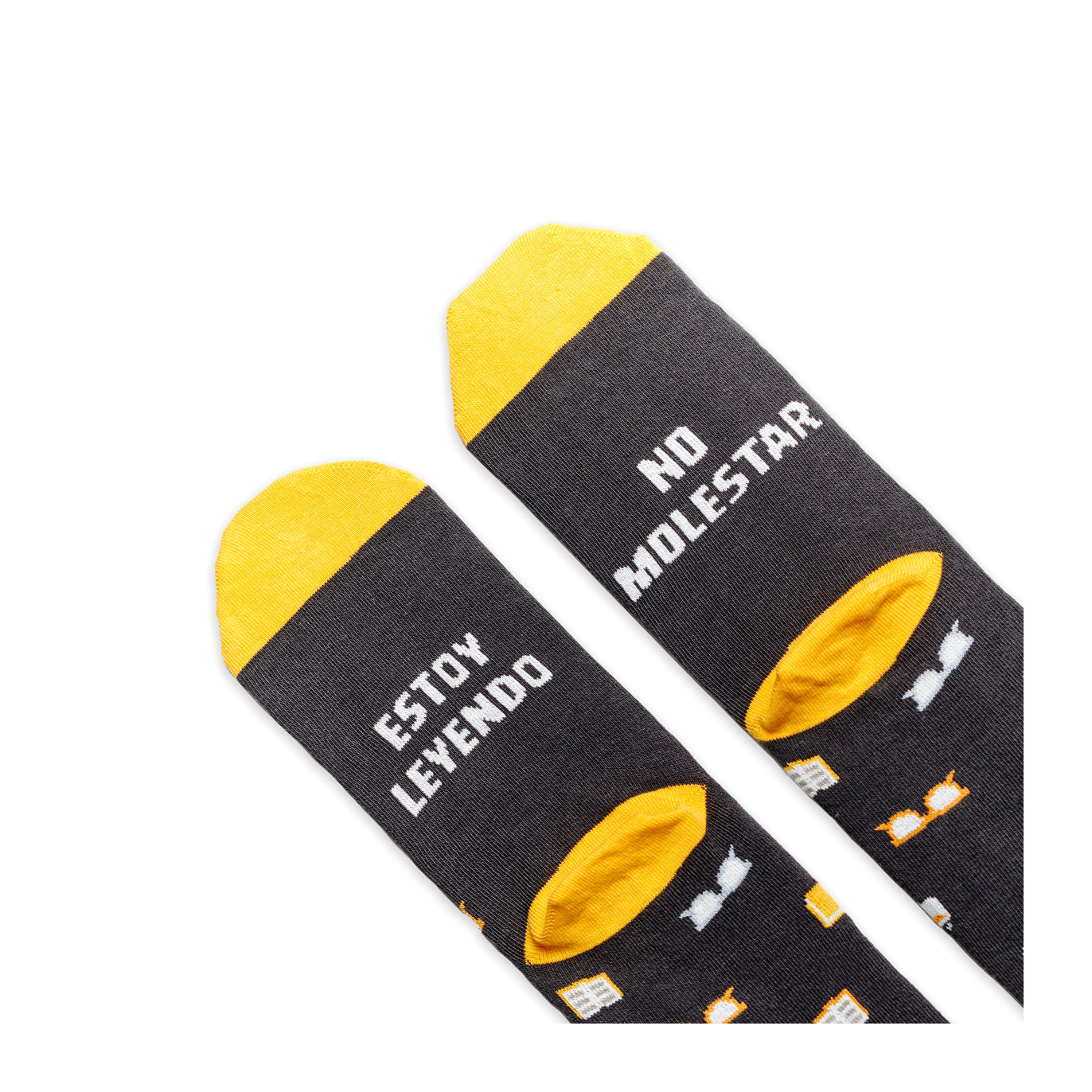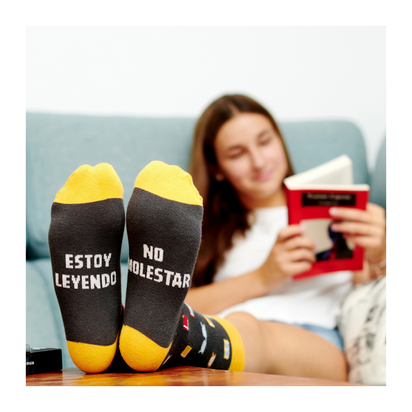 • Calcetines con el mensaje "No molestar, estoy leyendo".