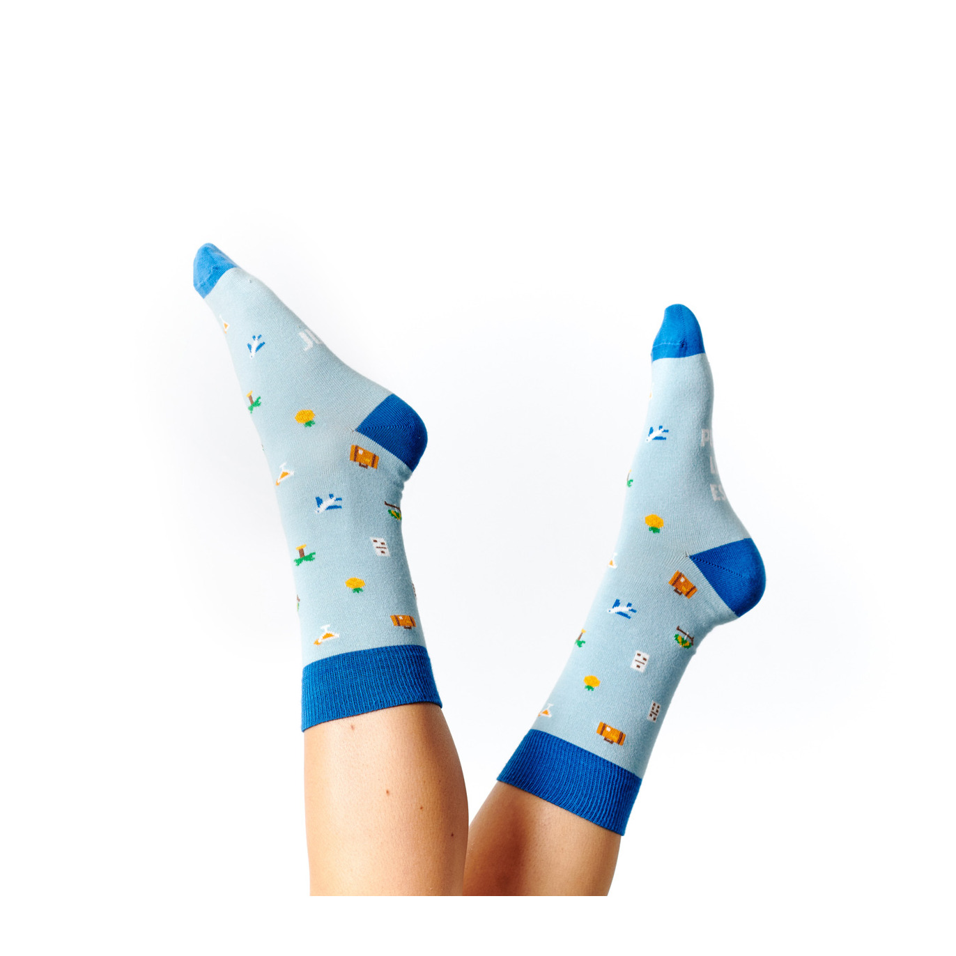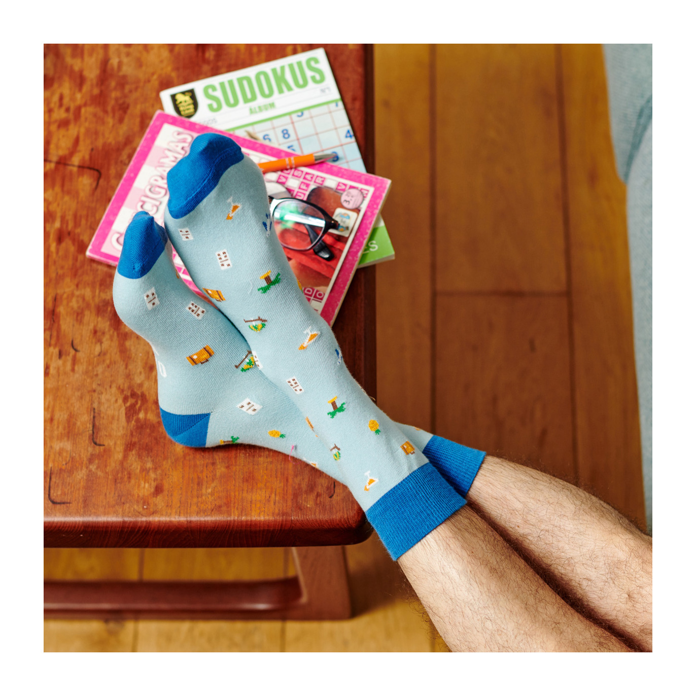 Estos originales calcetines dejan claro que están en modo jubilado: pies en alto y relaaaaax.