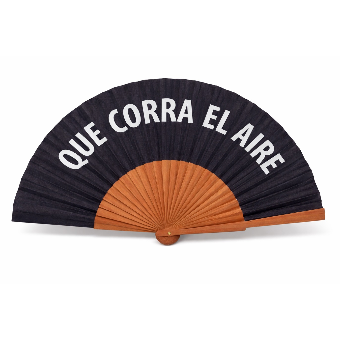 Mide 23 cm de alto y 42 cm abierto, tiene el tamaño perfecto para llevarlo en el bolso o la mochila y desplegarlo en cualquier momento, resulta especialmente práctico en el transporte público, festivales y todo tipo de aglomeraciones en las que sube la temperatura. Este abanico forma parte de la colección Al fresco, una serie de abanicos originales diseñados para hacer más llevadero el calor con estilo, actitud y un punto de humor.