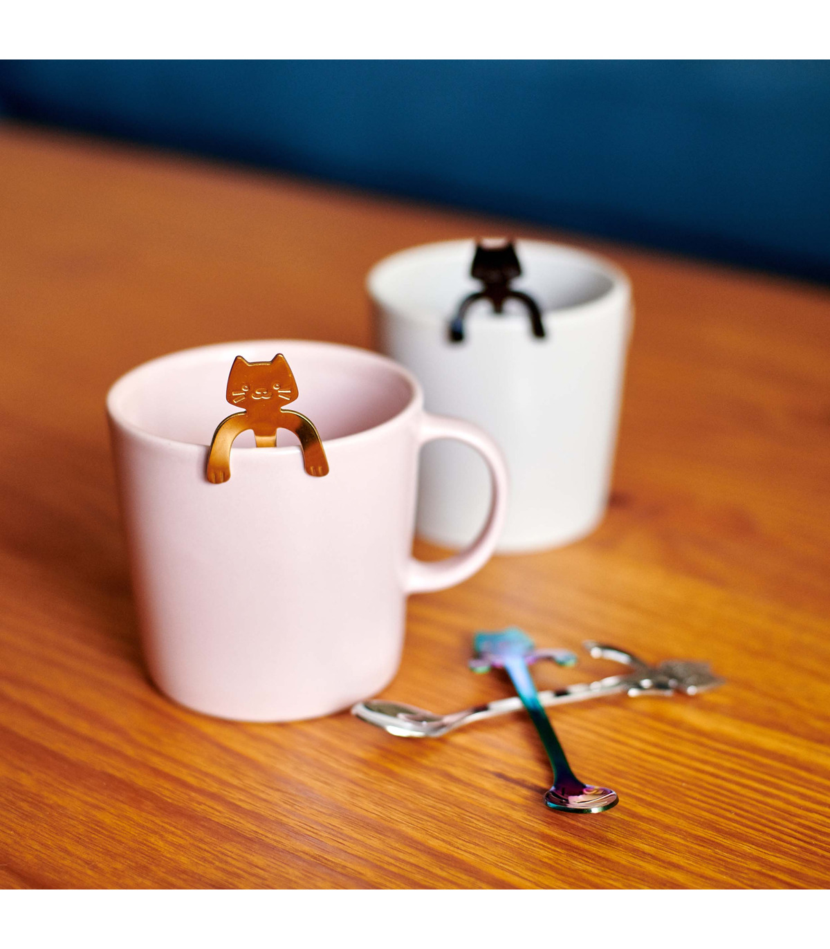 Entourez-vous de chatons à l'heure du petit-déjeuner avec ces cuillères au design amusant de chat sortant de la tasse.