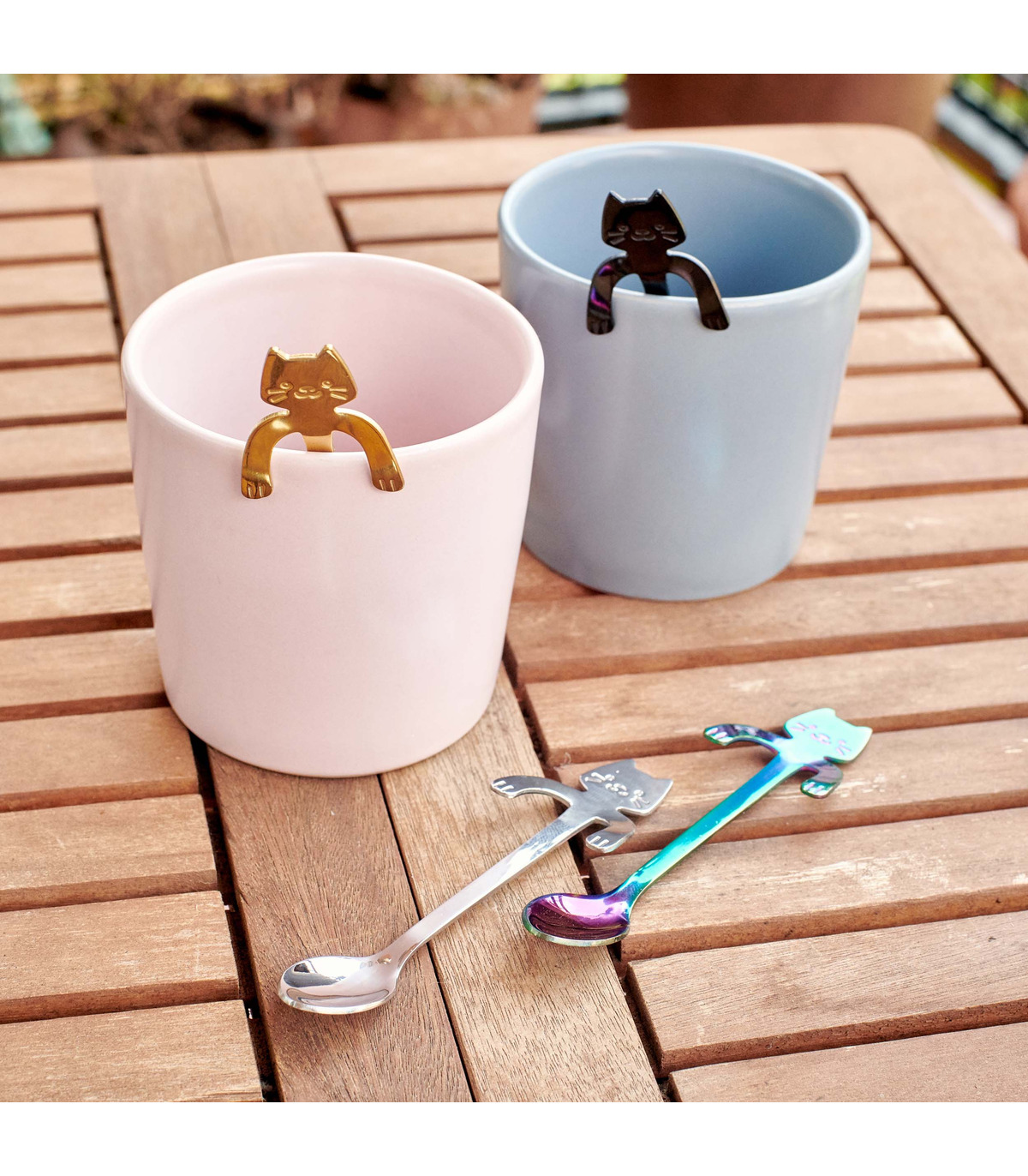 La forme de leurs pattes avant permet de suspendre les cuillères au bord de la tasse, offrant ainsi au chaton un regard curieux. Un cadeau pratique et original pour les amoureux des chats.