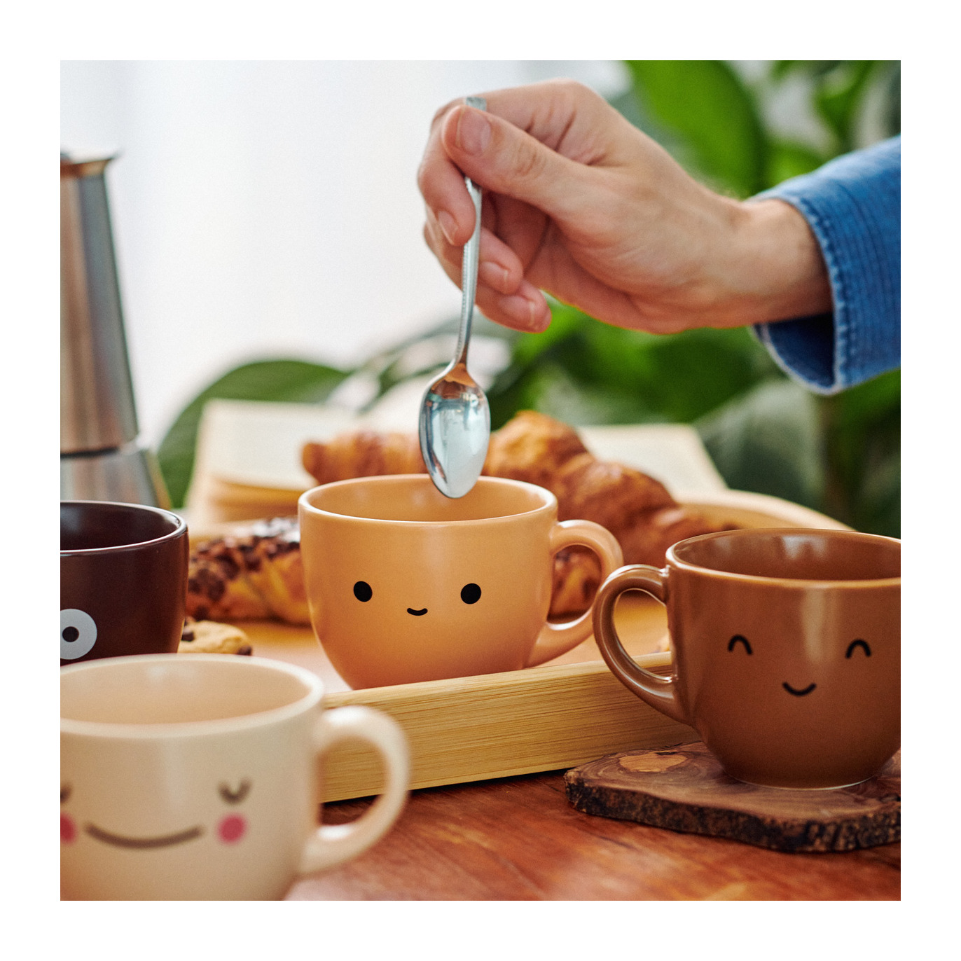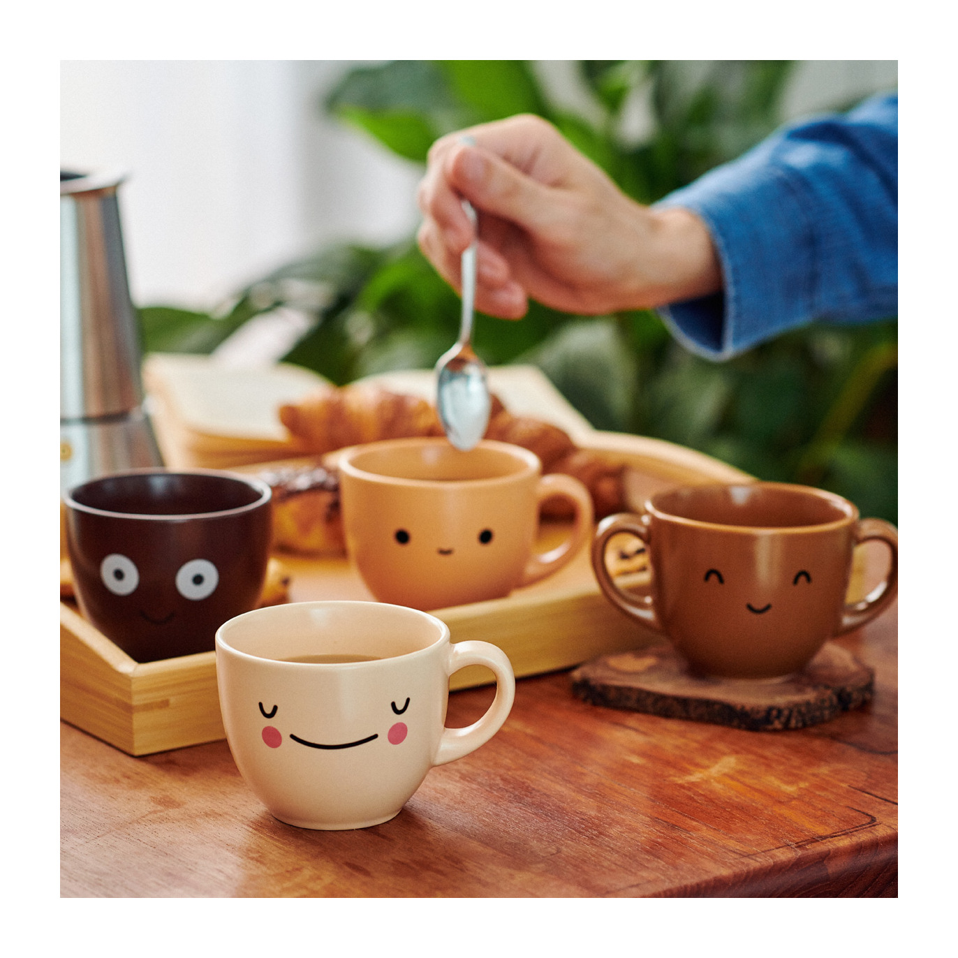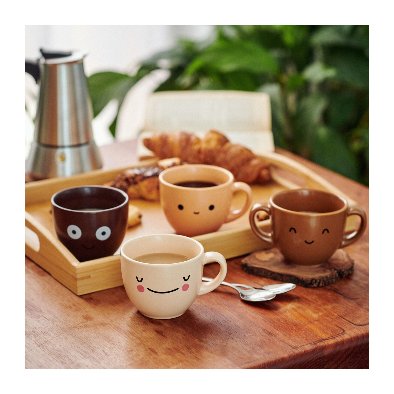 Chaque tasse a sa propre identité : une nuance, une forme et un visage différents. Elles sont fabriquées en céramique de haute qualité, avec une finition mate très agréable au toucher. Elles sont résistantes et passent au micro-ondes et au lave-vaisselle.